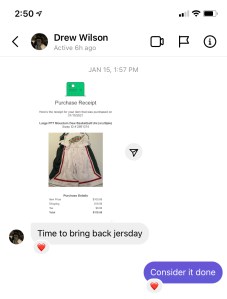The jersey that revived the Jersey Blog. The stipulations were that if Drew bought PFT’s basketball jersey from Big Cat’s charity Pile Auction (what a wild string of words), I would revive my Jersey Blog.