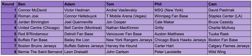 This week we carve out an entire episode for an eight round fantasy draft. The idea is, if you were building an NHL franchise from scratch how would you draft the following:
