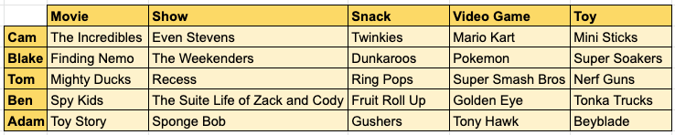 (40:59) We fantasy draft movies, tv shows, snacks, video games and toys from our childhood