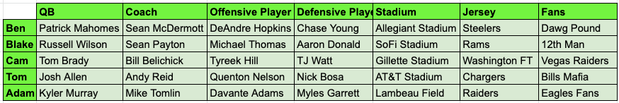 (36:00) We draft our own NFL franchise from scratch using the following categories: